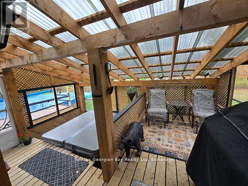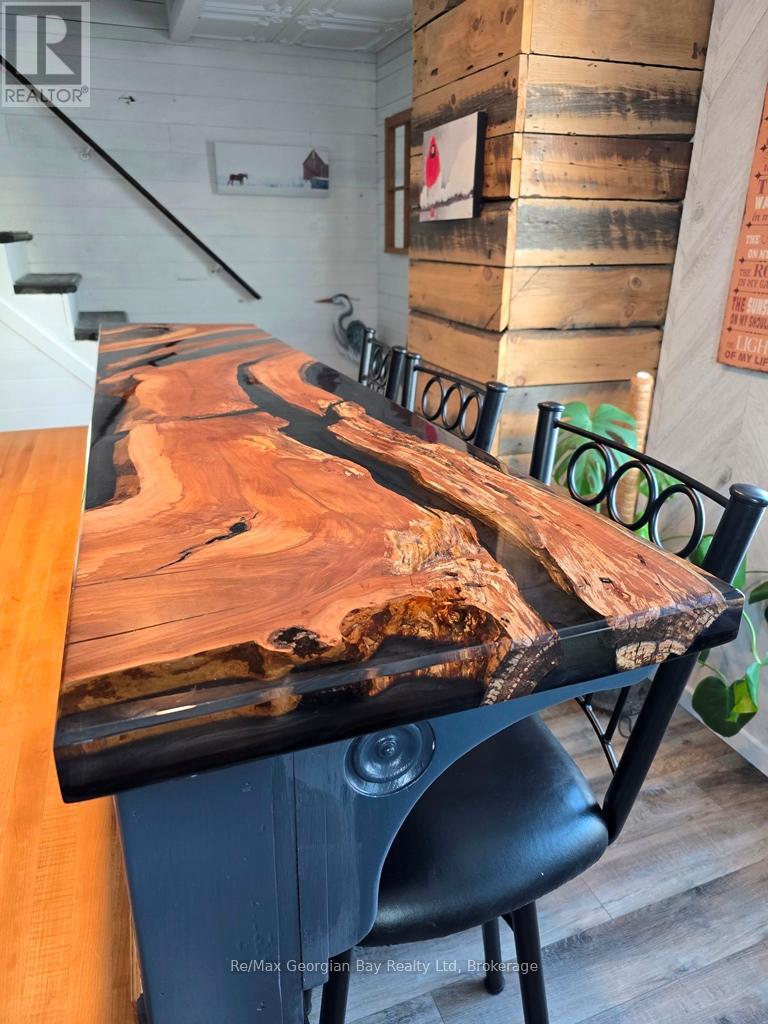 Set just outside Coldwater on just over an acre, this well cared for 3 bedroom, 2 bath home is designed for those who love both indoor comfort and outdoor living. Enjoy a fully fenced front yard, a heated above-ground pool with deck, and a beautiful enclosed porch complete with hot tub for year-round relaxation. Inside, the updated kitchen features a stunning one-of-a-kind epoxy island countertop that anchors the space. The standout 24x36 garage offers generous space for storage and hobbies, complete with a 60 amp service in the shop, (200 amp panel in house) and a cozy man cave area insulated & heated with a pellet stove. Conveniently located with quick access to highway 400, Maclean Lake, North River, and Coldwater River. Lovingly maintained and ready to be enjoyed with quick close available! (id:35448)